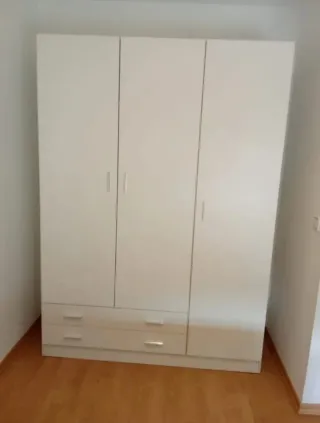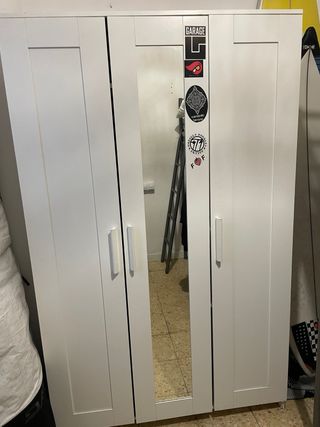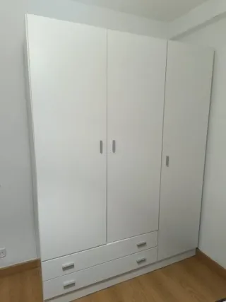 Armario de tres puertas blanco. Se encuentra en buen estado y esta ya desmontado listo para recoger :) - Acabado en blanco. - Tres puertas frontales. - Estantes interiores para almacenamiento.