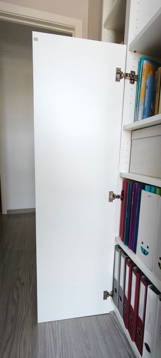 Puertas blancas para estantería Billy de IKEA Cuatro puertas de melamina blanca SuperPan a medida para hacer un armario DIY con la librería Billy de 80x28x202 cm, con los mecanizados listos para colocar tres bisagras regulables (no incluidas). Incluye 24 tornillos, 24 tetones y 4 chapas adhesivas. La anchura de cada puerta es de 40 cm y la altura de 140 cm. Están sin estrenar. Precio dos unidades: 70 euros Precio cuatro unidades: 130 euros