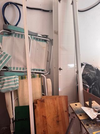Tenemos esta puerta blanca de garaje con motor esta super cuidada , se puso hace 8 años y de ha quitado para hacer reforma Tiene medidas de : 2,10 alto x 2,40 ancho