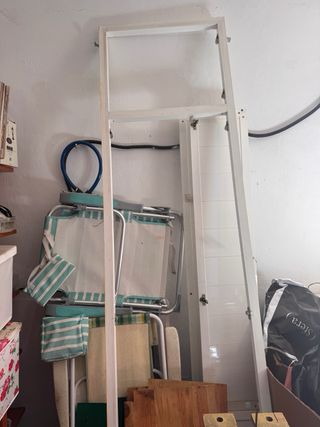 Se venden marco aluminio y 4 puertas lacadas blancas , 2 pequeñas arriba y 2 mas grandes abajo, junto con 4 baldas de madera. y 2 repisas - Marco de alacena. - Puertas de alacena. - Baldas de alacena.