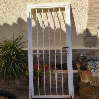 Puerta metálica de reja, ideal para exteriores. Su diseño de barrotes ofrece seguridad y un toque decorativo. - Material: Metal - Color: Blanco - Estilo: Reja - Uso: Exterior Medidas del hueco 90x1,97