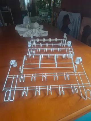 Conjunto de perchas metálicas diseñadas para colgar en puertas. - Estructura resistente. - Diseño práctico para organizar. - Acabado en color blanco.