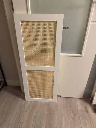Puerta decorativa para estantería Billy con acabado en ratán y marco blanco. - Diseño moderno y natural. - Marco de madera pintada en blanco. - Panel central tejido de ratán.