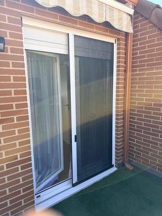 Mosquitera plisada de aluminio en color blanco. Ideal para puertas y ventanas. - Diseño plegable y discreto. - Marco de aluminio resistente. Medidas 148 cm (puede ser ampliable a 155 y por debajo sin problema. 228 de alto (ampliable 3-4 cm) Tiene 6 meses puesta y no se ha desplegado ya que en invierno no se ha usado. PRECIO A CONVENIR Costo 550€