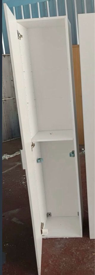 Armario mueble escobero multiusos modelo Tibet en color blanco. - Diseño moderno y funcional. - Puertas abatibles. - Estantes interiores para organización. Armario escobero de 2 puertas fabricado en color blanco. Este producto se entrega en kit. Dispone de manual de montaje incluido.Meidas: 180x80x35cm. Nuevo en su caja para montar