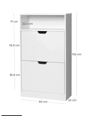 VASAGLE Zapatero 2 Compartimientos, Zapatero con Puerta Abatible, Organizador de Zapatos, Estante, División Ajustable, 8-12 Pares de Zapatos, Pasillo, 24 x 60 x 102 cm, Blanco Nube LBC040W01 Espacioso y versátil: El zapatero ofrece espacio a 8-12 pares de zapatos (hasta la talla 48,5). Gracias al estante superior, tienes espacio para plantas, fotos o recuerdos, por lo que tu habitación no solo estará organizada, sino que también será única Adaptable y optimizador de espacio: Con divisores extraíbles y ajustables en 2 niveles, este volcador de zapatos se puede adaptar completamente a tus necesidades y diferentes tipos de zapatos, si