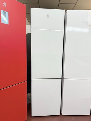 Nevera Fagor de color blanco. - Diseño moderno y elegante. - Puerta con tirador. - Panel de control superior. *** la puerta nevera tiene la bisagra que al cerrase precisa encaje , cierre y sello correcto”