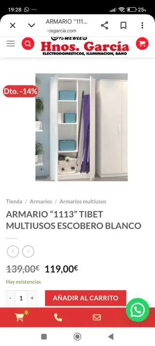 Armario, tres puertas y una puerta adicional pequeña Dos cajones Espejo Tres estantes Colgador de ropa MEDIDAS 120 × 50 × 190 de alto Disponible en color Cambria en blanco * ENVIOS A DOMICILIO (consulta precio) * GARANTIA 24 MESES MEDIDA ARMARIO 2 PUERTAS 120€ -alto 190cm x ancho 80cm x fondo 50cm MEDIDA 3 PUERTAS 175€ -alto 190cm x ancho 120cm x fondo 50cm MEDIDA ARMARIO 4 PUERTAS 230€ -alto 190cm x ancho 160cm x fondo 50cm *ATENDEMOS WHATSAPP 673.033.132*