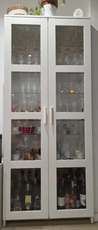 Elegante vitrina blanca con puertas de cristal y tiradores negros. HACEMOS ENVÍOS PAGA EN CASA PRODUCTO NUEVO