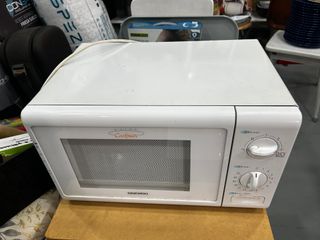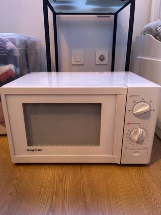 Microondas blanco de la marca Daytron. Cuenta con un diseño compacto y funcional. Se vende por compra de uno nuevo. Funciona perfectamente - Potencia regulable. - Temporizador. - Puerta frontal.