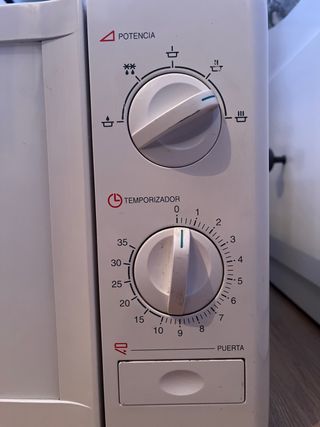 Microondas de color blanco de la marca Bluesky. - Funciona perfectamente. - Panel de control con dos diales. - Puerta con ventana. - Diseño compacto. - Medidas: Ancho 46 cm Alto: 26 cm Fondo: 33 cm