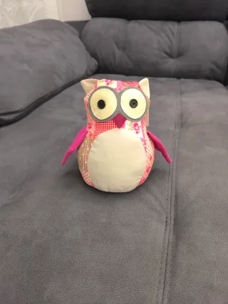 Este búho de tela es perfecto como sujeta puertas o como un bonito adorno decorativo. - Diseño de búho con tela estampada en tonos rosas y blancos. - Ojos grandes con botones negros. - Alas y detalles en color rosa.