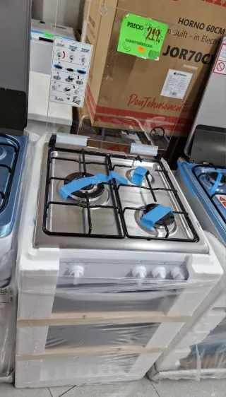 Cocina de gas con horno, marca Johnson, en color blanco y con tres fuegos. - Encimera de acero inoxidable. - Mandos frontales. - Puerta del horno con cristal. GARANTIA DE 3 AÑOS OFICIAL, SON ARTICULOS NUEVOS VISITANOS DE LUNES A SABADOS DE 10:00 A 14:00 Y DE 17:00 A 20:30HRS. AV. PORTUGAL 21 ALCORCON. (604 3874 55 / 919 470 965). CONSULTE CON NUESTROS DEPENDIENTES; LA DISPONIBILIDAD DEL ARTICULO Y TARIFA DE TRANSPORTE (NO REALIZAMOS ENTREGAS FUERA DE LA COMUNIDAD DE MADRID). ACEPTAMOS CUALQUIER FORMA DE PAGOS EXCEPTO O CONTRAREEMBOLSO. "ALMACEN DE SEGUNDA MANO" TU TIENDA DE CONFIANZA.
