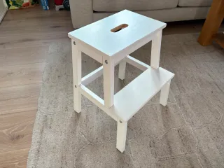 Escalera blanca de Ikea. Ideal para alcanzar lugares altos con seguridad. - Diseño moderno y funcional. - Material resistente y duradero. Taburete con escalón, blanco, 50 cm Peso maximo 100 kg. Se entrega en mano en metro Puerta del sur, Alcorcón.