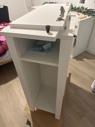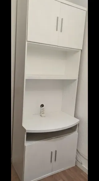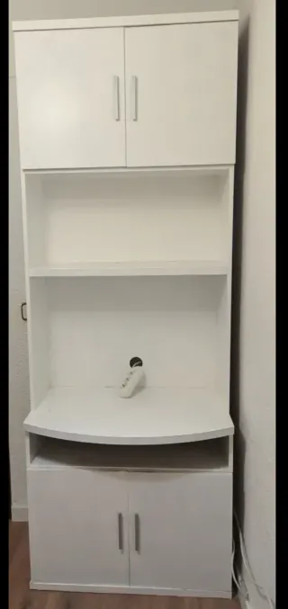 Mueble alto de madera en color blanco Lidl . Estan todas las piezas Falta ponerle las puertas quien sepa hacer los agujeros . Monte al revés los laterales y los agujeros de la puerta no coincide ( si se quitan se rompen los tacos) nunca se ha llegado a usar . Para quien quiera rematarlo recoger ensanche sur Alcorcón Solo le falta 1 tabla interior de balda lo de mas completo - Diseño moderno y funcional. - Ideal para almacenar objetos. - Se entrega desmontado.