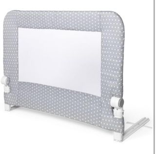 Barrera de seguridad para cama infantil con un bonito estampado de estrellas grises. - Diseño con estrellas blancas sobre fondo gris. - Malla central blanca. - No se rebaja, solo se ha instalado en cama pero no se le ha hecho uso.