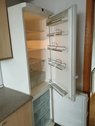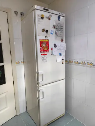 Frigorífico Combi de la marca Liebherr. Un electrodoméstico funcional y espacioso para tu cocina. 60 x 60 x 205 cm de alto. Funciona perfectamente, nevera y congelador. A veces hace algo de hielo en zona inferior. Buen estado pero con signos de uso. - Diseño en color blanco. - Puerta con apertura a la derecha. - Compartimentos interiores de cristal.