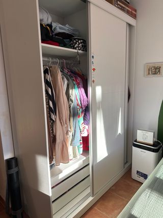 Armario en perfecto estado, como nuevo, interesados llamar al 672852755 , recogerlo en Almería zapillo. - Diseño de puertas con lamas horizontales. - Tiradores decorativos en forma de flor. - Es bastante espacioso ,lo vendo porque donde me mudé no me cabe. Tiene la cajonera de abajo también lo que está semi desarmado.