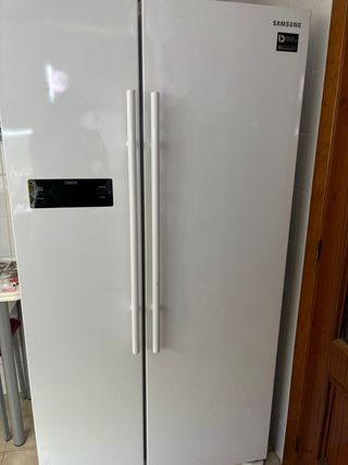 Frigorífico Samsung de dos puertas en color blanco. Dispone de tiradores verticales. - Panel de control digital en la puerta. - Diseño moderno y elegante.