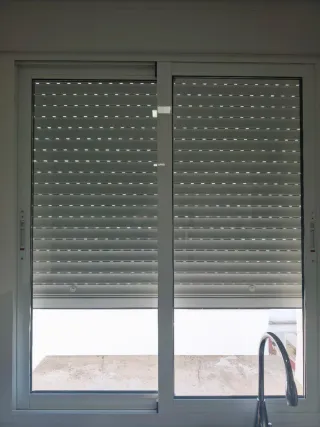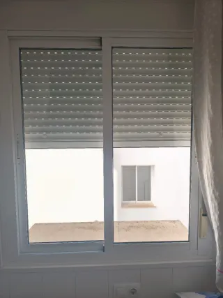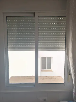 Ventana corredera de aluminio en color blanco. Ideal para cualquier estancia. - Marco de aluminio resistente. - Acabado en color blanco. - Incluye persiana - Medidas 2,37 alto x 1,39 ancho