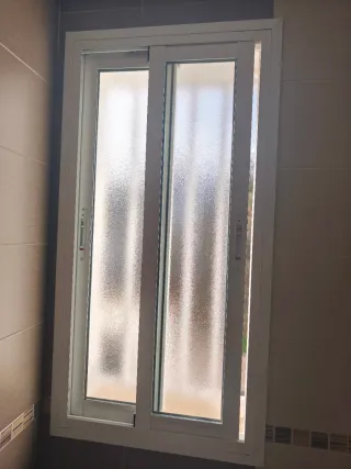 Se vende ventana corredera de aluminio blanco. - Medidas: 78 cm de alto x 60 cm de ancho. - Marco de aluminio blanco. - Cristal texturizado.