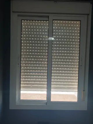 Ventana balconera de aluminio, ideal para cualquier espacio. Está en buen estado y lista para instalar. Tiene pequeños roces en los laterales. - Ventana corrediza de aluminio blanco. - Dos hojas de cristal. - Incluye persiana. - Con marco superior y premarco de 2 cm - Medidas 198 * 134 cm