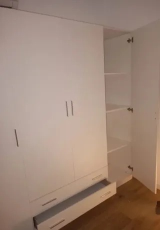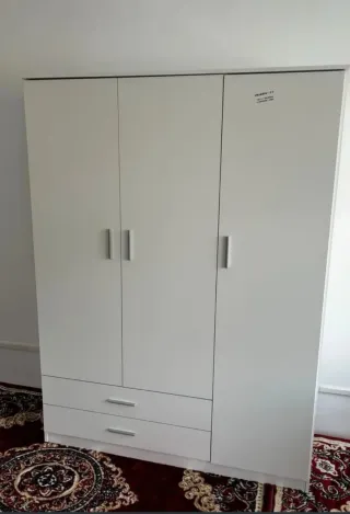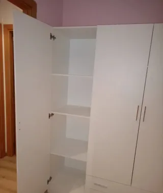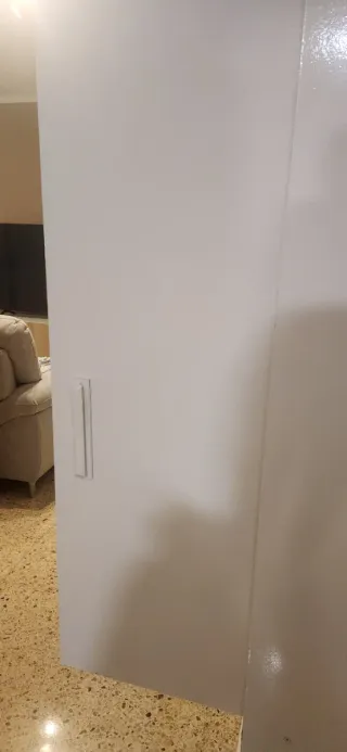 Armario de dos puertas con un diseño moderno y limpio. - Acabado en blanco. - Tiradores blancos Es practicamente nuevo y en muy buen estado.