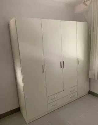 Armario blanco 4 puertas y 2 cajones