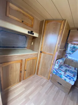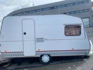 Caravana en buen estado, ideal para colocar en terreno. - Exterior blanco. - Ventana con cortinas. - Puerta de acceso. - Rueda de repuesto. Vendo caravana para terreno para dejar fija no se puede circular con ella se gestiona transporte esta seminueva no tiene cocina ni nevera tenía pero sele quito para más almacenamiento. Se gestiona transporte por vizcaía y cercanías