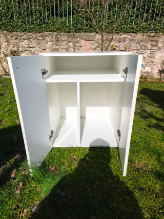 Mueble besta de Ikea blanco para poner las puertas o cajones que quieras o ninguns. El coste en tienda es 60 €. Me equivoqué de medida. Está nuevo. No tengo la factura por eso no lo puedo devolver. Las puertas sencillas cuestan 10 € cada una. Pero puedes combinar con las que quieras. Tengo las patas de tornillo que vienen con el.