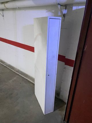 Taquilla de metal con cerradura. Tiene doble puerta con llave. Incluye dos juegos de llaves - Diseño alto y estrecho. - Acabado en color blanco.