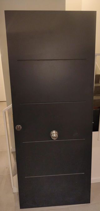 Vendo puerta de entrada acorazada de la marca THT, reconocida por su gran seguridad y resistencia. Cara exterior gris y cara interior blanca. Sistema de cierre multipunto con 4 bulones de acero Maneta interior cromada, pomo exterior redondo y juego de llaves originales. Muy bien cuidada. Solo tiene 3años. - Acabado liso. Alto 205 x Ancho 82 y 5 de profundo en cm. Para recoger en Burgos o la puedo llevar mientras se pague antes.