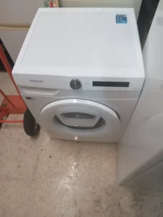 Secadora de carga frontal de la marca Balay. - Color blanco. - Panel de control con selector de programas y botones. - Puerta redonda con etiqueta. - Cubierta protectora gris en la base. Funciona pero no seca bien... Para repasar o chatarra. Precio negociable.