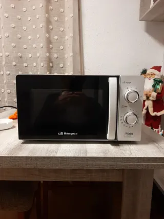 Microondas Orbegozo en color blanco, con un diseño moderno y compacto. - Panel de control con mandos giratorios. - Puerta con cristal negro. - Acabado en blanco.