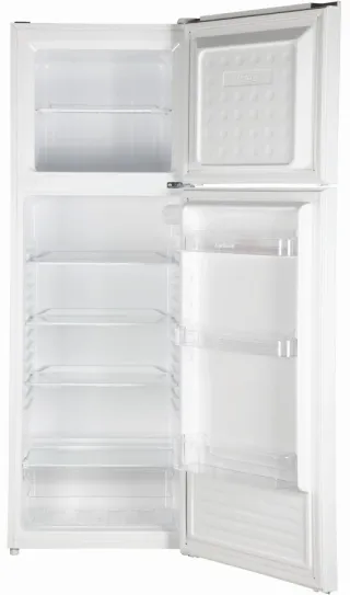 Nevera blanca de dos puertas, con congelador superior. - Diseño clásico. - Tiradores integrados.