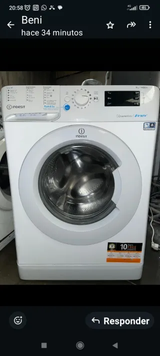 Lavadora de carga frontal Indesit con capacidad de 9 kg. - Color blanco. - Panel de control con programas. - Puerta frontal. - Motor Inverter.