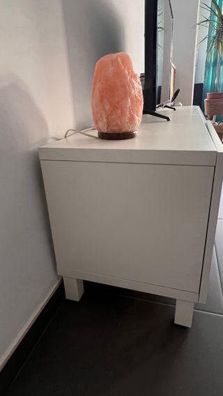 Mueble de salón Besta de Ikea en color blanco. Cuenta con tres puertas para almacenamiento. Uno de los gabinetes con balda. Se vende con o sin patas. - Diseño moderno y funcional. - Amplio espacio interior. - Se puede colgar suspendido * tiene una picadita en la parte posterior pero no se ve en absoluto con el TV delante (adjunto foto)