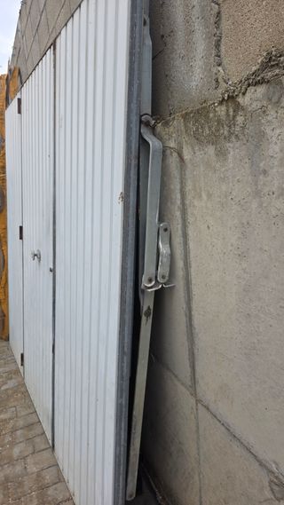 Puerta de garaje basculantes de muelles con puerta peatonal dentro, elaborada en perfiles galvanizados y chapa multiusos color blanca. Medidas : 2,55 metros de ancha x 2,20 metros de alta. - Color blanco. - Con muelles. - Incluye puerta peatonal. Nota : No tiene el bastidor pero se lo fabricaria nuevo cuando se la vayan a llevar. TAMBIÉN POSIBILIDAD DE HACERSELA NUEVA A BUEN PRECIO A MEDIDA Y DEL MATERIAL Y COLOR QUE QUIERA.