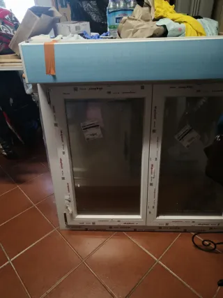 Se vende ventana de PVC en color blanco de dos hojas abatibles y una oscilobatiente y doble acristalamiento el cristal estará disponible en 4-5 días 120x110