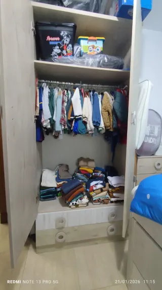 Armario doble totalmente equipado, ideal para organizar tu ropa y accesorios. - Puertas correderas. - Cajoneras interiores para mayor capacidad de almacenaje. - Diseño moderno y funcional 2,37 alto, 2 ancho 65 profundo