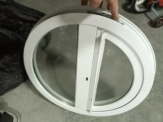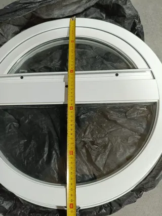 Ventana redonda de aluminio, ideal para espacios que buscan un toque diferente. Su diseño circular aporta estilo y luminosidad. - Marco de aluminio blanco. - Cristal transparente.