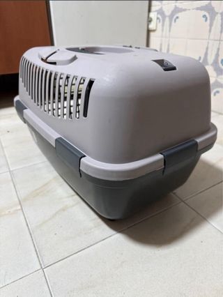 Transportín para gatos o perros pequeños. Ideal para viajes o visitas al veterinario. - Diseño ventilado para mayor comodidad. - Puerta frontal con cierre seguro. - Asa superior para fácil transporte.