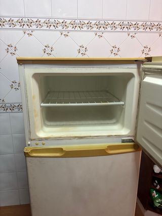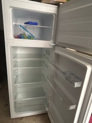 Frigorífico de color blanco con dos puertas. Funciona bien tanto nevera como congelador.