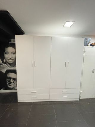 Armario blanco 4 puertas con cajones