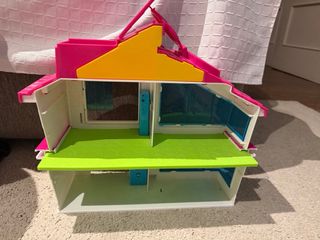 Casa de juguete Pinypon con un diseño colorido y divertido. - Techo a dos aguas. - Ventanas con detalles. - Puerta de entrada. - Escalones frontales. Tiene luces y sonido que funcionan perfectamente pero hay que ponerle pila LE FALTAN ALGUNAS PIEZAS