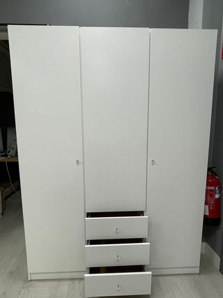 Armario 3 puertas blanco con 3 cajones