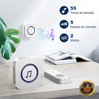 04045. ABIERTO SIN USAR. SURFOU Timbre Inalámbrico Exterior Interior Impermeable, Campainha Sem Fios, Wireless Doorbell Puerta para Casa 400M de Alcance con 55 Melodías, 5 Volumen (1 blanco receptor + 1 blanco transmisor.) 【Señal Potente, en Cualquier Lugar】Nuestro timbre presume de un potente alcance de 400m en áreas abiertas, asegurando que siempre estés en contacto. Ya sea en el patio trasero, arriba, o incluso en el sótano, nunca vuelvas a perder la visita de un invitado. 【Configuración en Segundos】Monta sin esfuerzo el transmisor del timbre inalámbrico en tu pared usando los tornillos proporcionados o cinta adhesiva. Dis...