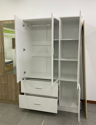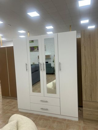 ☎️ 680*558*196 Se vende armario ropero de 4 puertas completamente NUEVO, ideal para dormitorio. elegante en color blanco. Incluye 2 espejos frontales que aportan amplitud a la habitación Cuenta con gran capacidad de almacenamiento y 4 cajones inferiores. Ideal como armario de dormitorio, ropero grande o armario de habitación. Medidas: • Alto: 200 cm • Largo: 160 cm • Fondo: 52 cm ✅ Características: Armario nuevo 4 puertas 2 espejos 4 cajones amplios Diseño moderno y minimalista Color blanco