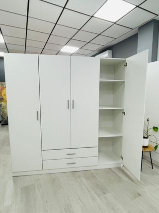 Armario 4 puertas Medidas: Alto 190cm Ancho 160cm Fondo 50cm Disponible en blanco y color madera Hacemos envios Pagos contrareembolso