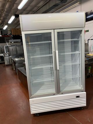 Armario refrigerado de 2 puertas de cristal con luz interior, estantes regulables, color blanco, seminuevo y con garantia. Medidas 1200x750x2060 mm. Ruedas inferiores. Dispongo de todo tipo de maquinaria de hosteleria nueva y usada. Tienda en Madrid.
